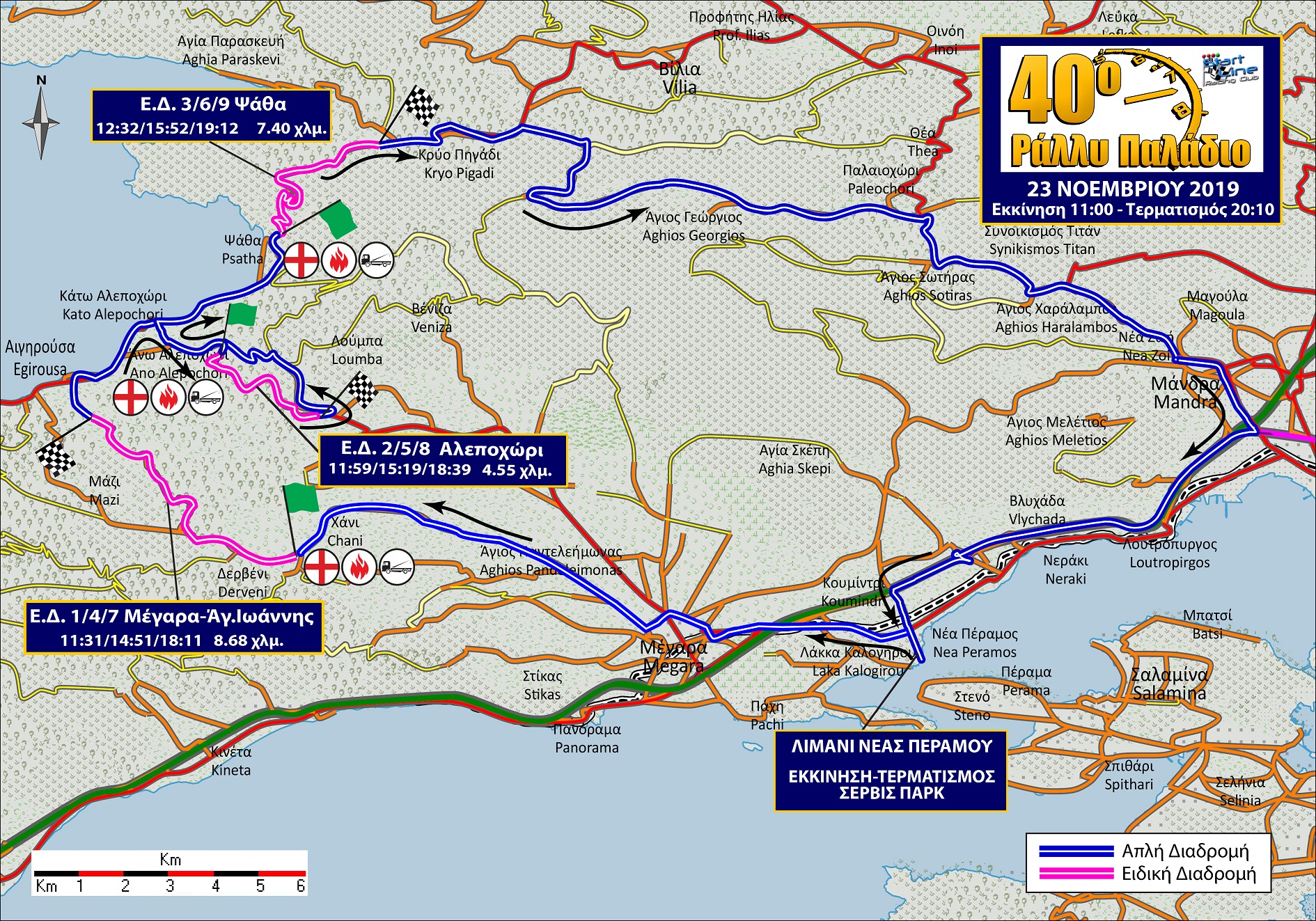 Οι συμμετοχές λήγουν την Παρασκευή 10/07 στις 24:00 μέσω ΣΔΔΑ της Ο.Μ.Α.Ε. Η εκκίνηση του 1ου αγωνιστικού θα δοθεί στις 18 Ιουλίου στις 15:15, με τον τερματισμό στο Λουτράκι να δίνεται στις 22:19. Ο Διοικητικός & Αρχικός Τεχνικός Έλεγχος θα γίνει το απόγευμα της Παρασκευής 17 Ιουλίου από τις 19:00 έως τις 21:00, στο 16χλμ Λεωφόρου Λαυρίου, Παιανία, σταθμός αυτ/των (AVIN) πλησίον ΜΕΚ, καθώς και το Σάββατο 18 Ιουλίου από τις 11:00 έως τις 13:00 στο στο Αλεξάνδρειο Συνεδριακό Κέντρο Λουτρακίου. Να τονίσουμε πως οι αναγνωρίσεις λήγουν την Παρασκευή 17/07 στις 23:30.