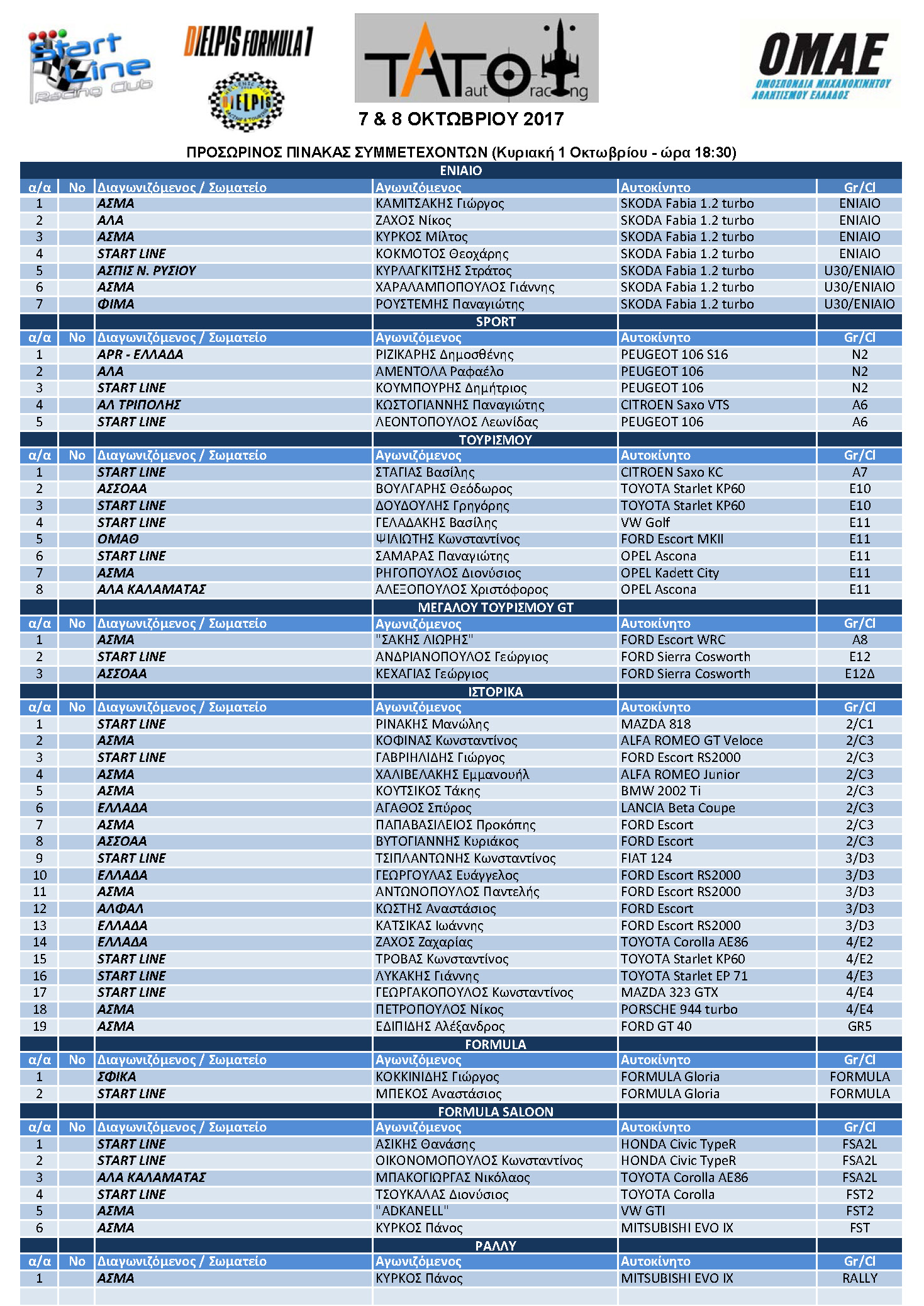 1ος Αγώνας Πανελληνίου Πρωταθλήματος Ταχύτητας Αυτοκινήτων 2017