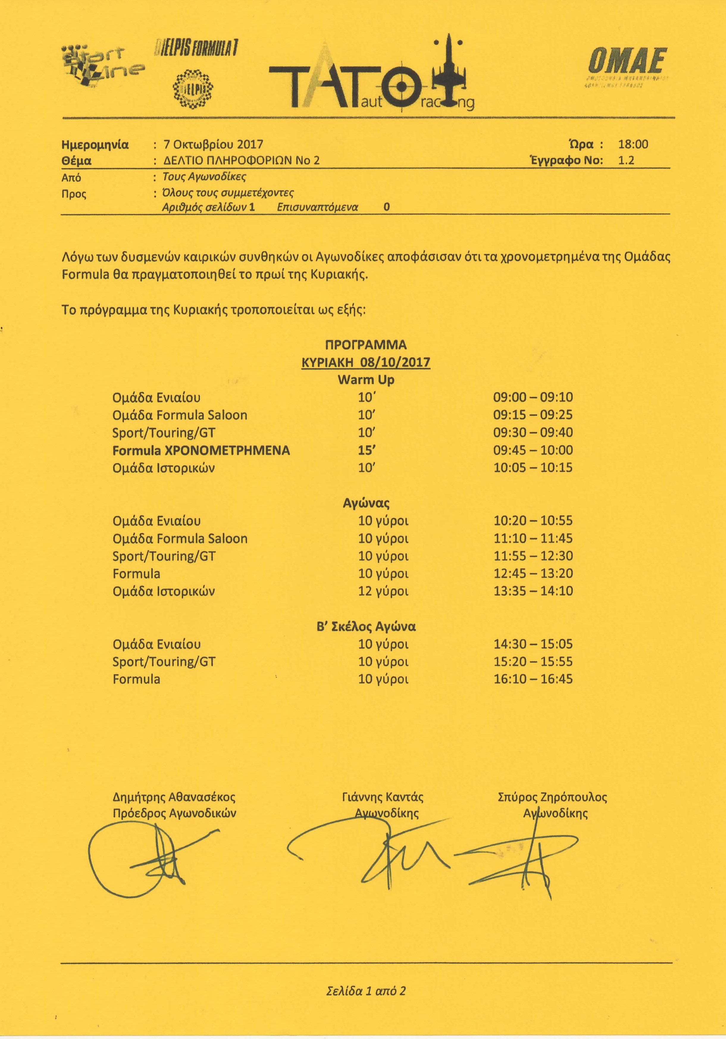 Αγώνας Ταχύτητας λοιπόν στο Αεροδρόμιο Τατοΐου, σε έναν από τους πλέον ιστορικούς χώρους που ανέδειξε οδηγούς αγώνων που ακόμα και σήμερα φέρνουν στη μνήμη, όσων είχαν την τύχη να παρακολουθήσουν αγώνες στο Τατόι, εξαιρετικές «μάχες» μεταξύ οδηγών που έχουν αφήσει ιστορία στο χώρο του μηχανοκίνητου αθλητισμού στη χώρα μας.